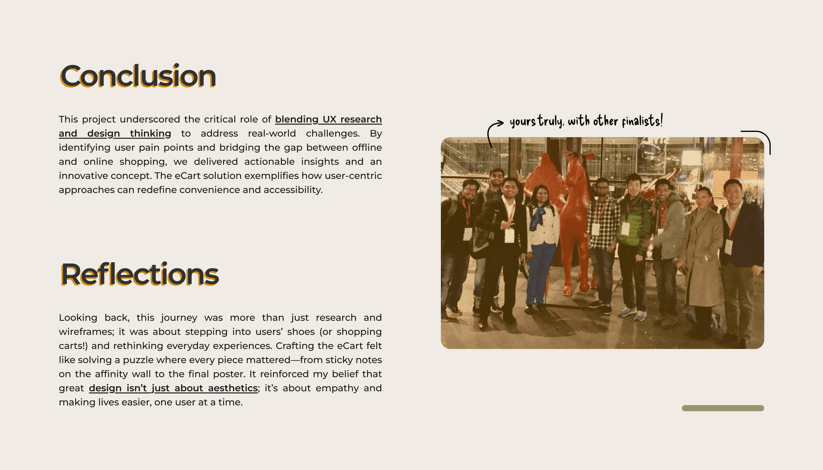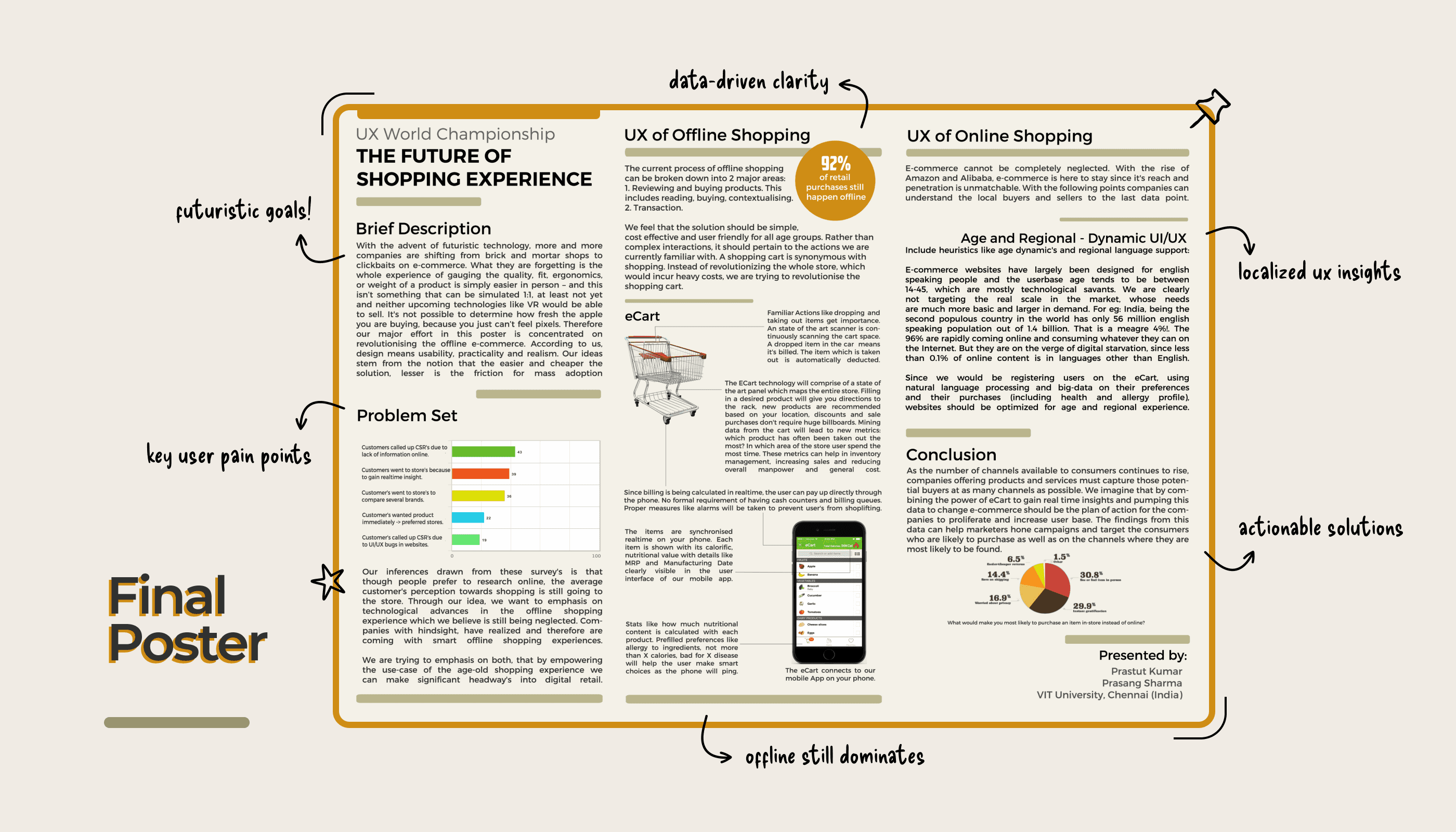 The challenge was to reimagine the in-store shopping experience by bridging offline and online retail. I submitted a full research-driven project, covering needfinding, user personas, affinity mapping, and a final design proposal, all within the competition's constraints.