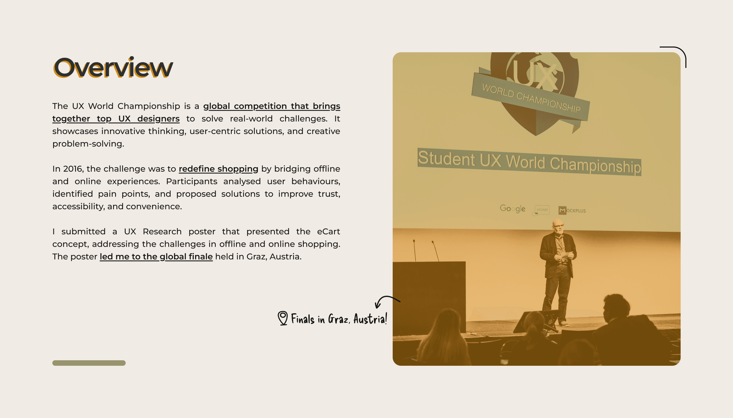 Advanced to the finals in Graz, Austria, competing among the world's strongest UX practitioners.